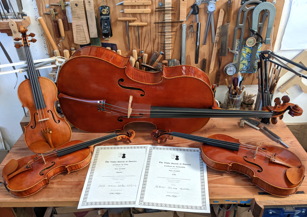The Violin Society of America (VSA) International Competition is one of the most prestigious violin making competitions in the world. I frequently participate in it as it pushes me to further the development of my work and creates an opportunity to share and be inspired by my colleagues. I am very grateful that my instruments have been recognized with the following awards: